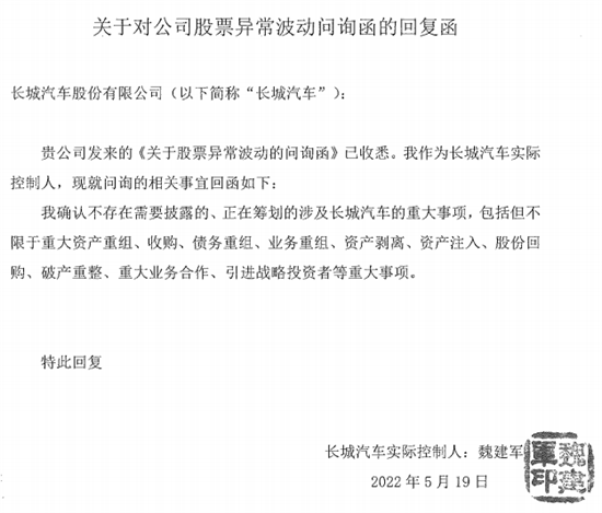 A股尾盘冲击涨停 长城汽车:不存在未披露的重大信息