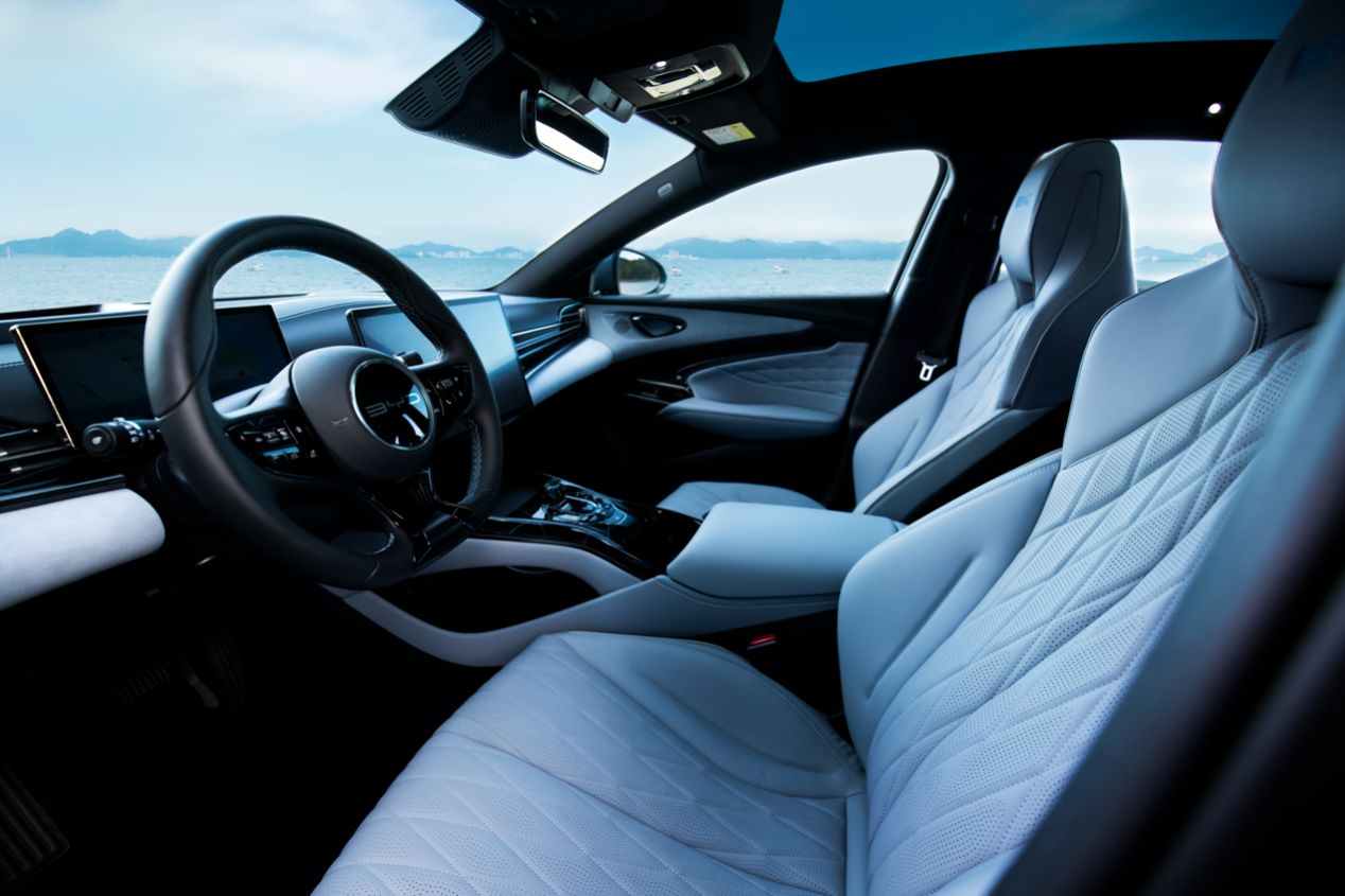 “海洋美学”再进化,海豹姿态动感、优雅 基于更年轻、更新能源化的“海洋美学”的设计理念,海豹传承了Ocean X概念车的精髓,造型犀利,车身姿态低趴,具有极致的运动感。短前后悬、长轴距的完美车身比例,让人一眼就可以感受到强烈的运动气息和优雅气质。海豹的内饰风格与外观高度统一,轻盈流畅的曲线轮廓,形式多样的海洋元素,营造出柔和灵动、充满活力的整体氛围。